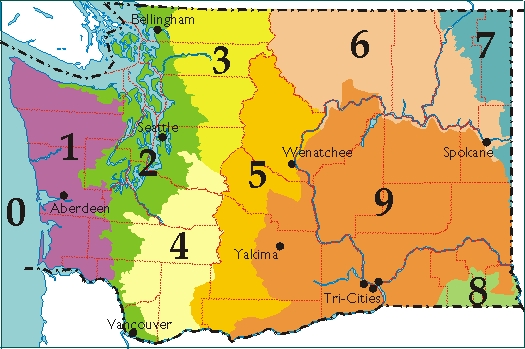 1 Pacific Northwest Coast 2 Puget Trough 3 North Cascades 4 West Cascades 5 East Cascades 6 Okanogan 7 Canadian Rockies 8 Blue Mountains 9 Columbia Plateau 0 Oceanic